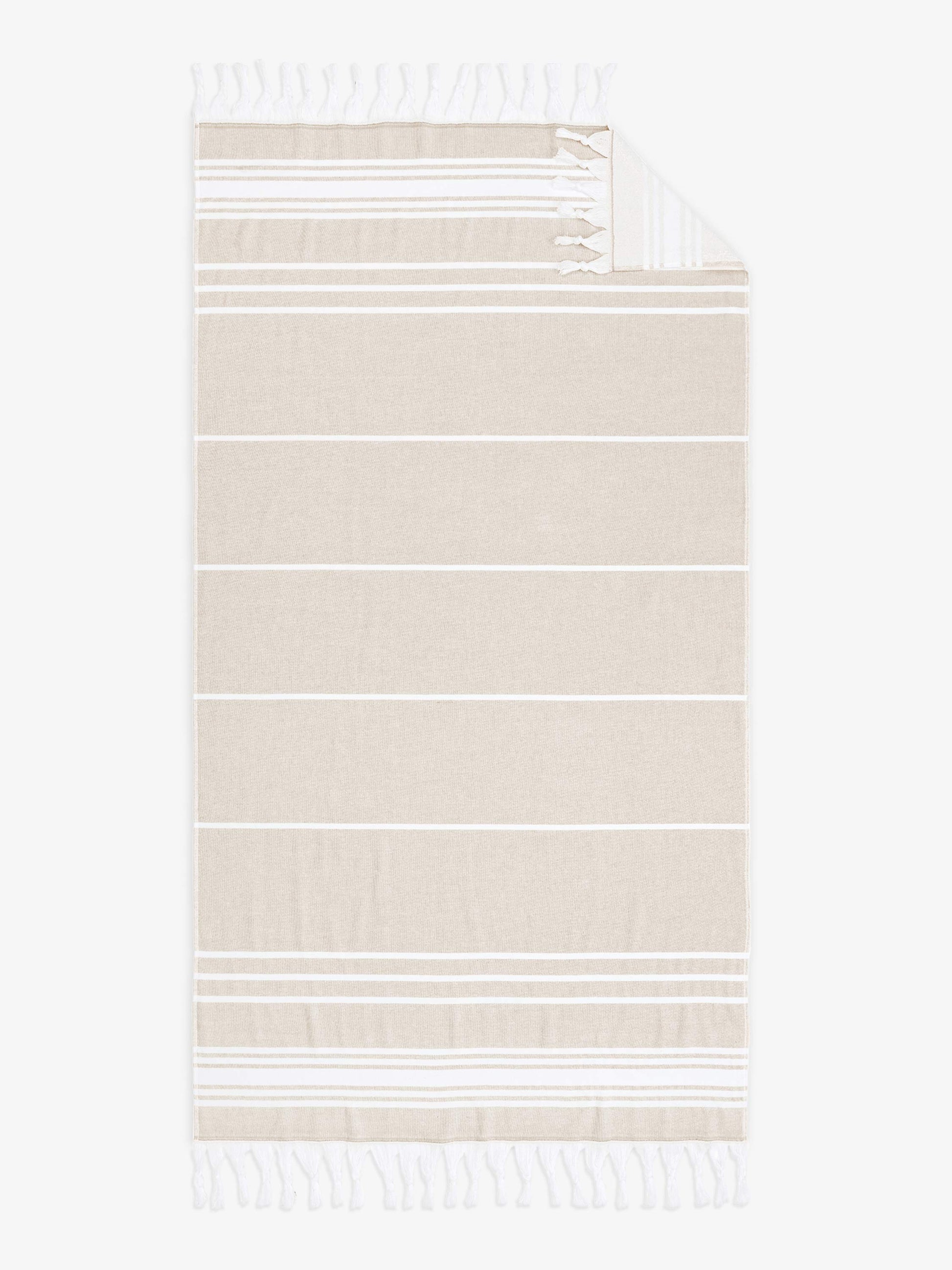 Understated luxury in classic stripes and pleasing hues finished with a playful fringe. Our classically designed Turkish towels are plush, eye-catching, and envy-inspiring. Use these towels for a picture-perfect beach day, or to elevate your everyday bathing ritual with a chic set of inviting colors. Also available as a matching hand towel.