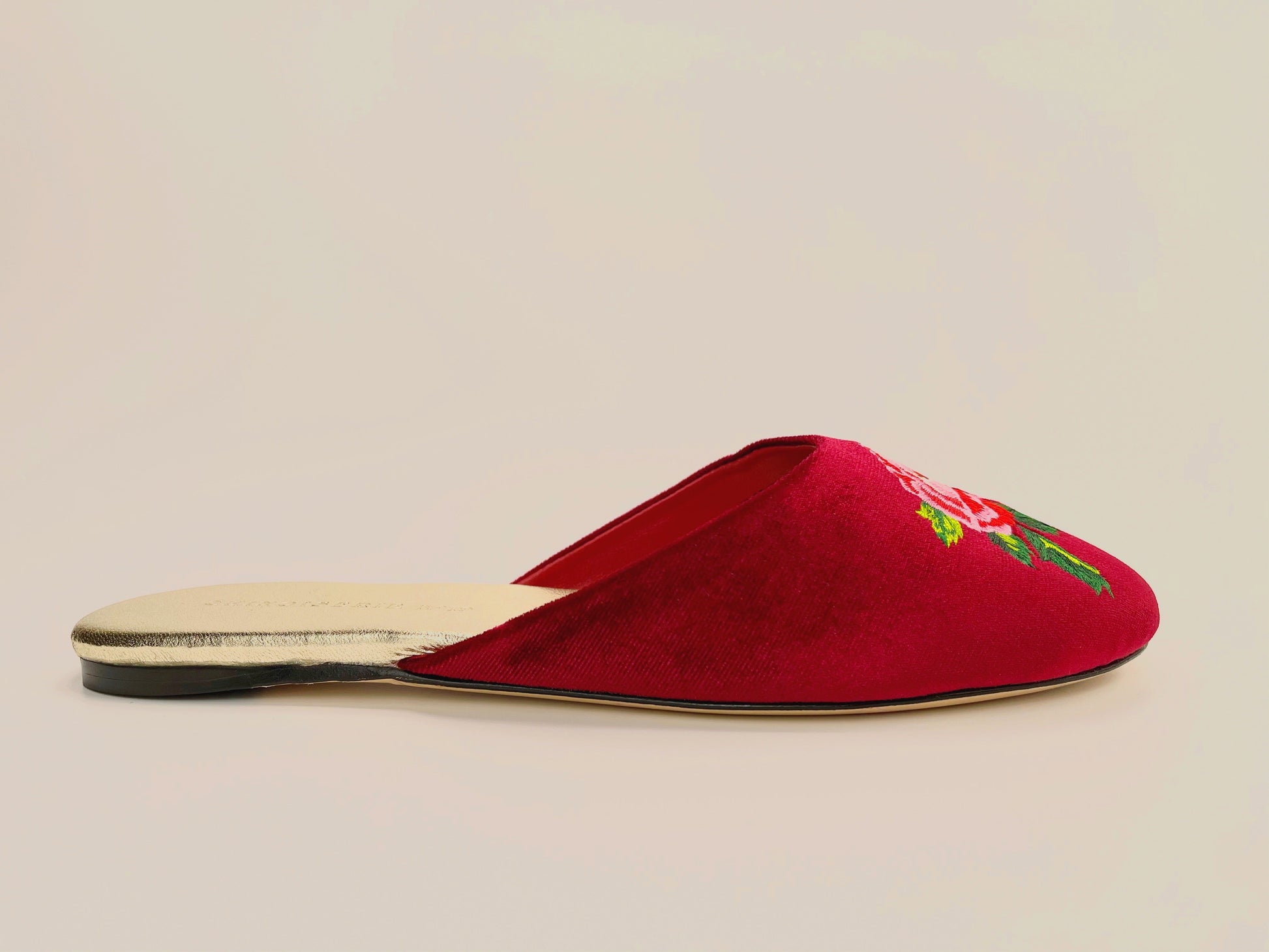 The flower of spring, Peony is the most popular flower in the Far East, also known as 'Queen of flowers'. This aromatic and feminine flower that you can imagine the fragrance of romantic spring. Almond toe with padded soles for adding comfort. They are crafted from butter-soft leather lining and insole. Outsole is leather in soft brushed handfeel. Narrow fit with low heel for extra elegance. You can pair with your favorite jeans for a stroll on Sunday farmer's market, or make yourself comfy with our mules for a perfect flight outfit and just as charming for a special night out.