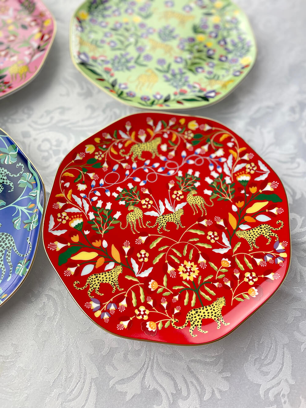 These Leopards Forest Fine Bone China featured Amazon Rainforest creatures and the wonders of nature, connecting fine art and nature. Bright gold banding looks fantastic and provides superior strength.Starters, sides, or sweets, true luxury is about following your intuition. Rich in color, print and personality, this design will spark your imagination and add a pop of inspiring color and bold pattern to your table. Presented in our signature JZ gift box.