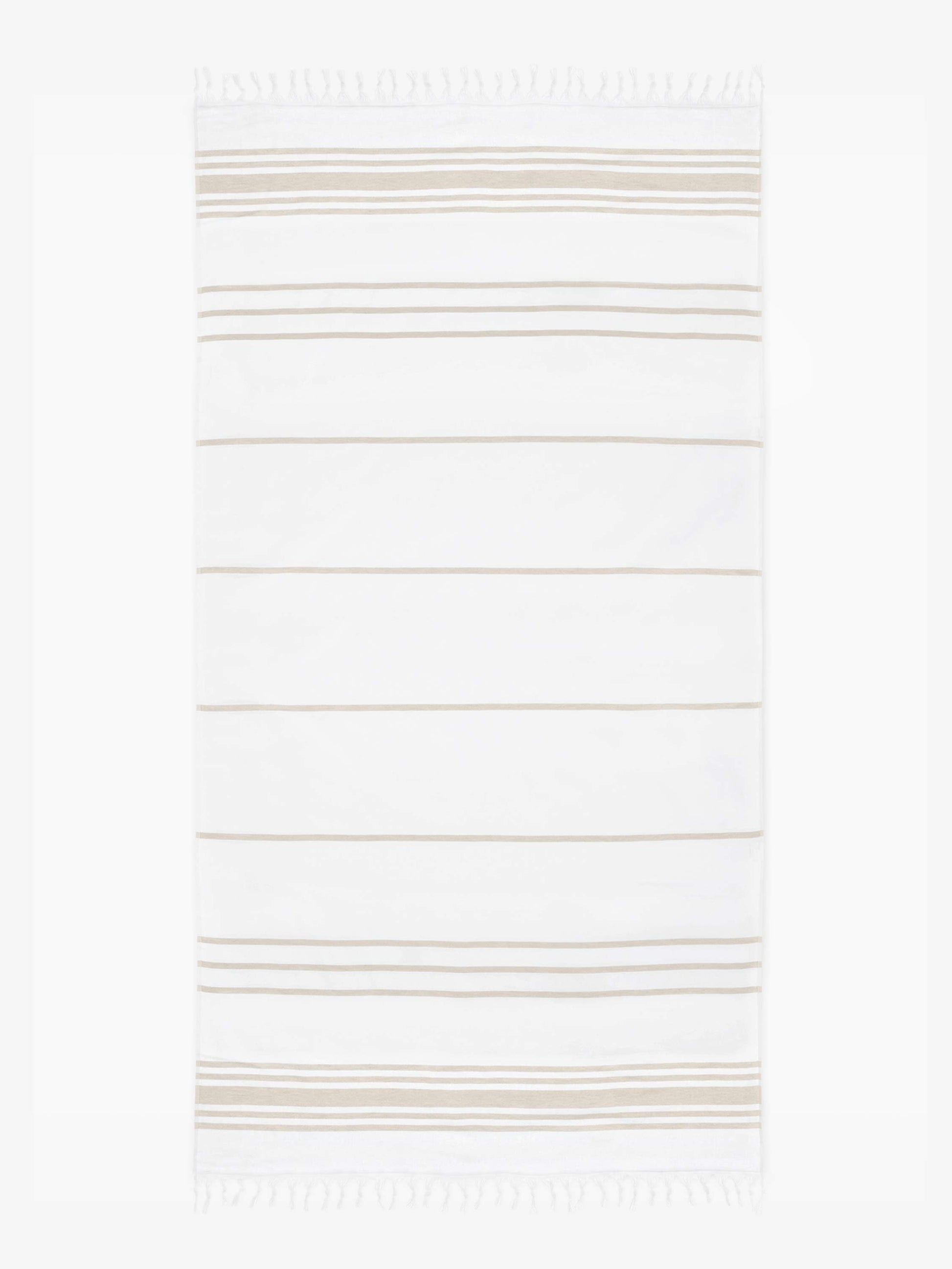 Understated luxury in classic stripes and pleasing hues finished with a playful fringe. Our classically designed Turkish towels are plush, eye-catching, and envy-inspiring. Use these towels for a picture-perfect beach day, or to elevate your everyday bathing ritual with a chic set of inviting colors. Also available as a matching hand towel.