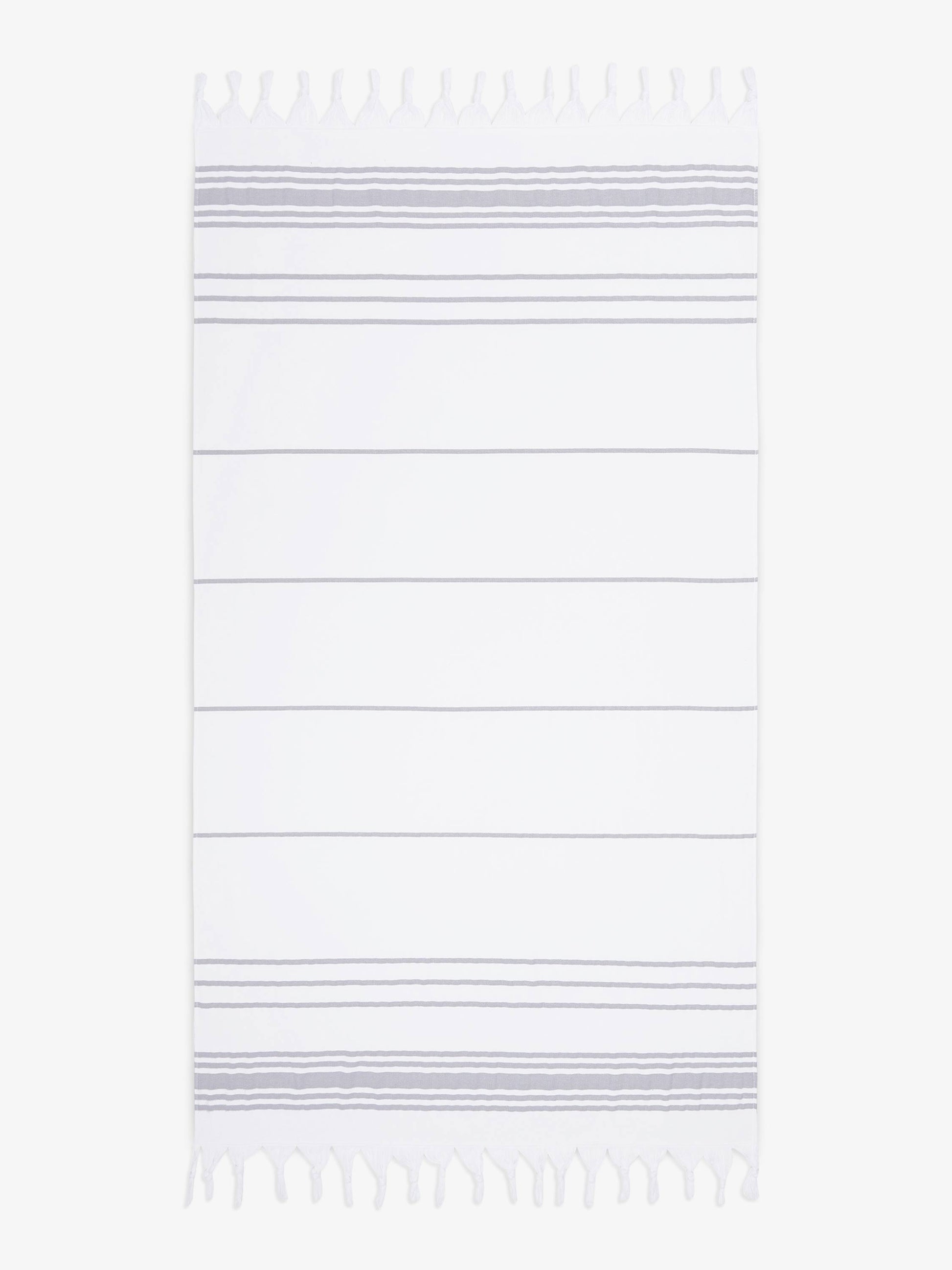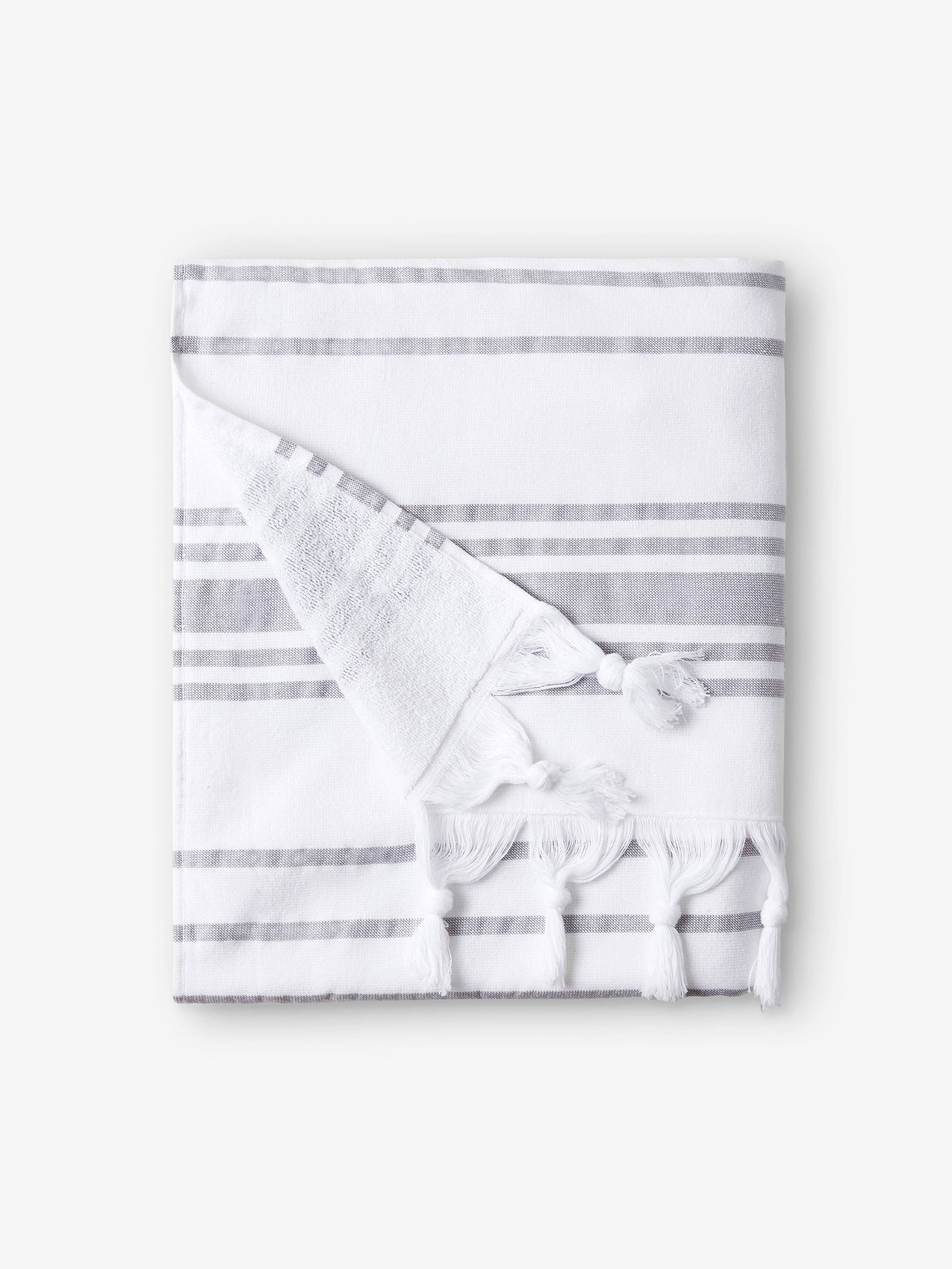 Understated luxury in classic stripes and pleasing hues finished with a playful fringe. Our classically designed Turkish towels are plush, eye-catching, and envy-inspiring. Use these towels for a picture-perfect beach day, or to elevate your everyday bathing ritual with a chic set of inviting colors. Also available as a matching hand towel.